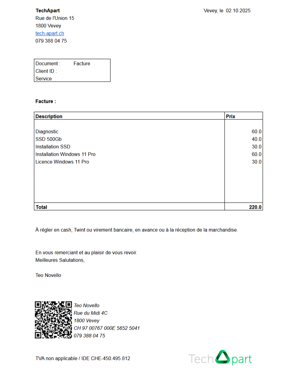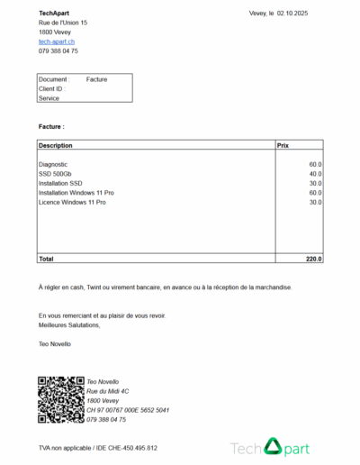 Un problème avec votre ordinateur fixe ou portable? TechApart vous dépanne rapidement à Vevey ou à domicile, 7j/7. Diagnostic transparent et réparation efficace au meilleur prix, contactez-nous pour fixer un RDV dès maintenant!